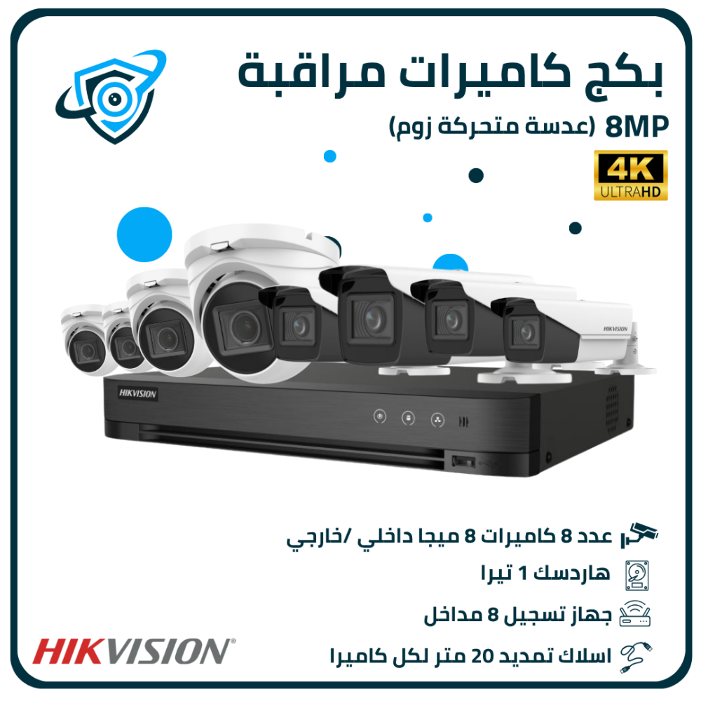 بكج كاميرات مراقبة 8 ميجا عدسة متحركة - عدد 8 كاميرات