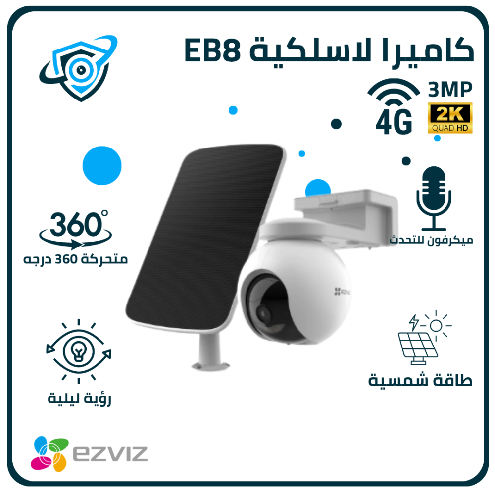كاميرا EZVIZ EB8-4G خارجية ذكية بدقة 2K تعمل بالبطارية وبدون Wi-Fi