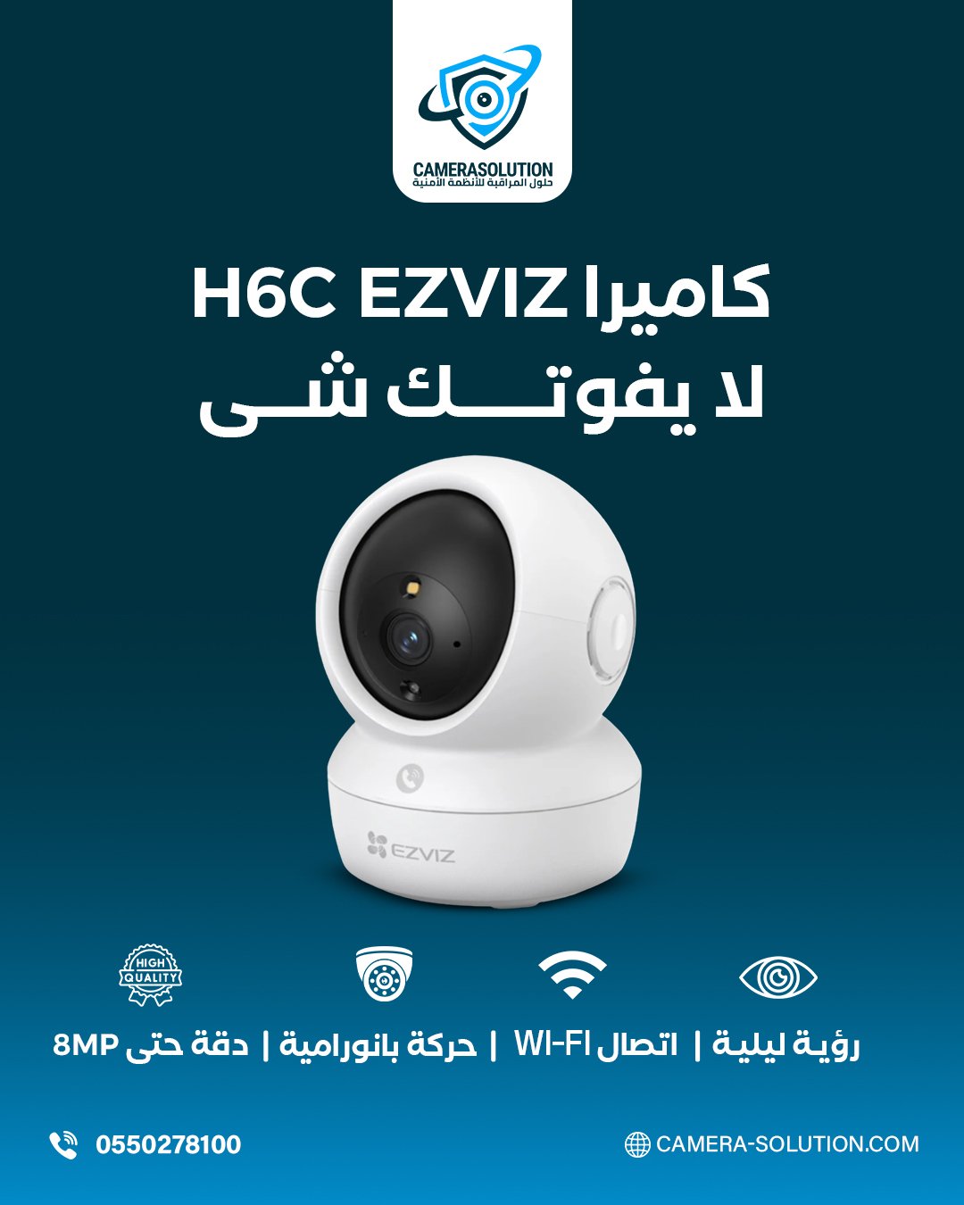 اقب كل ركن في منزلك أو مكتبك مع كاميرا EZVIZ H6c المتحركة بدقة 1080p. تصميم أنيق، رؤية ليلية ملونة، وتحكم ذكي من التطبيق.